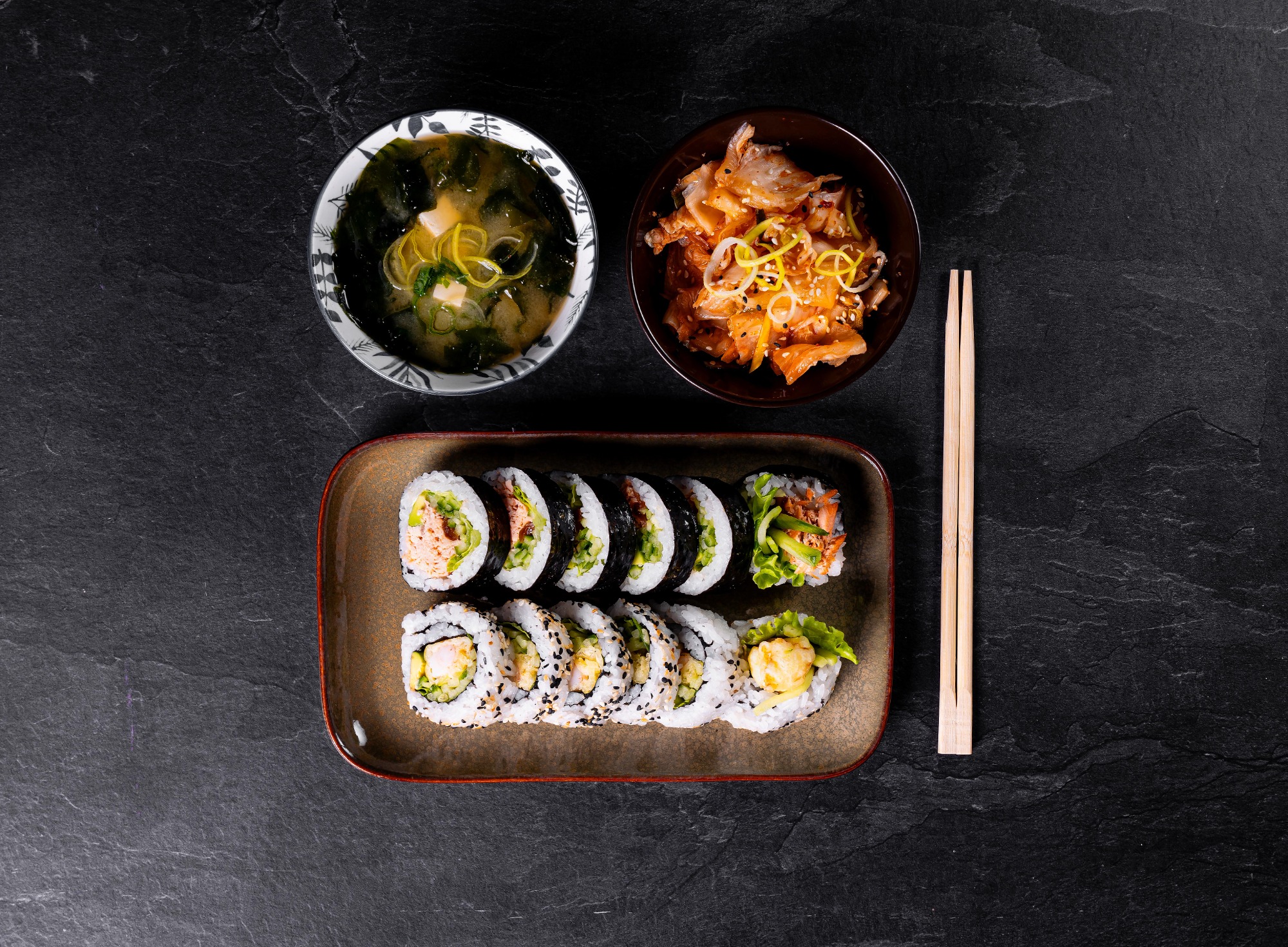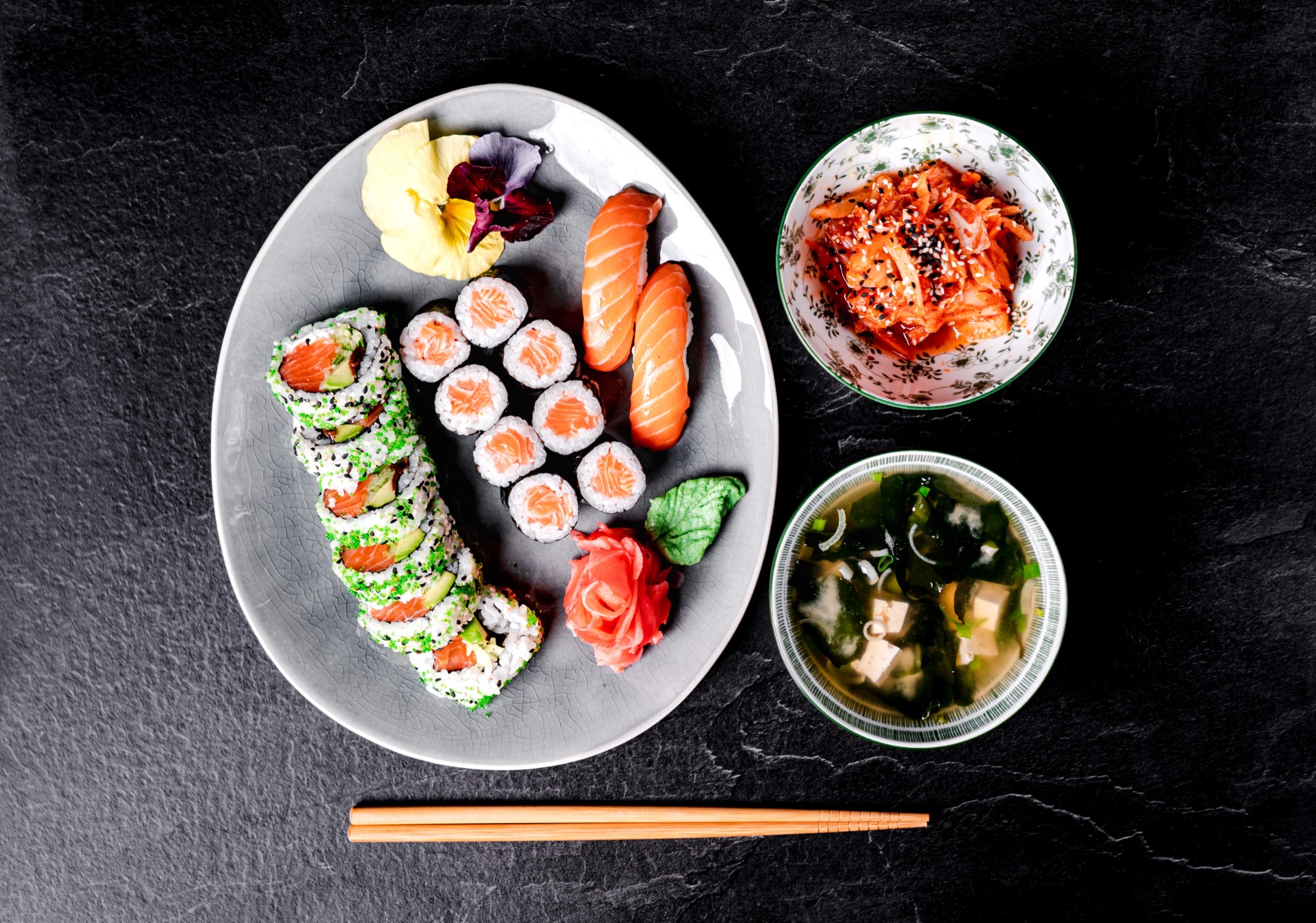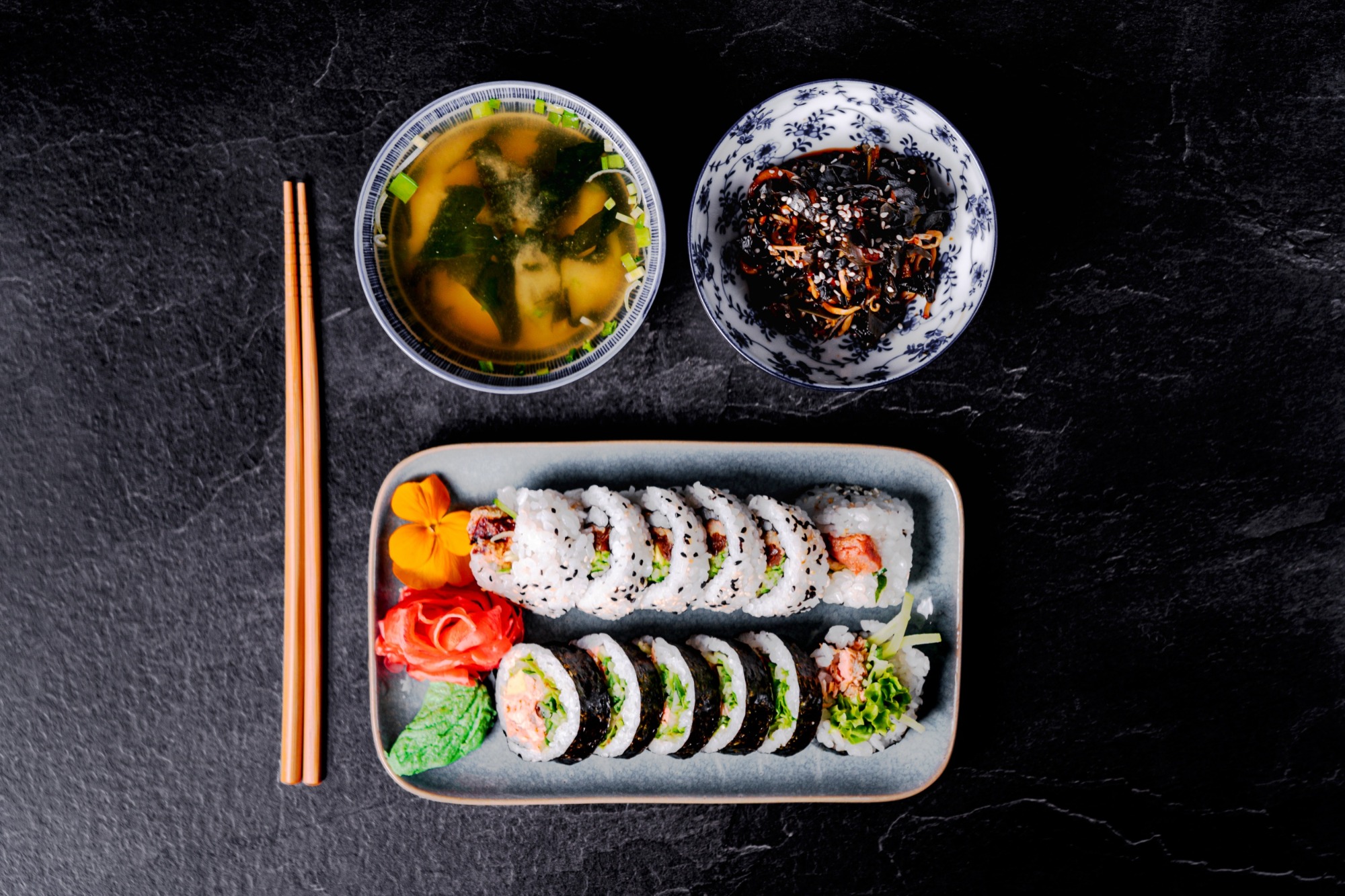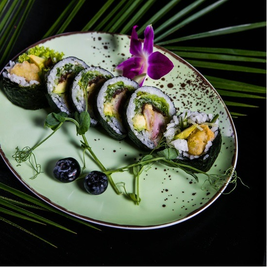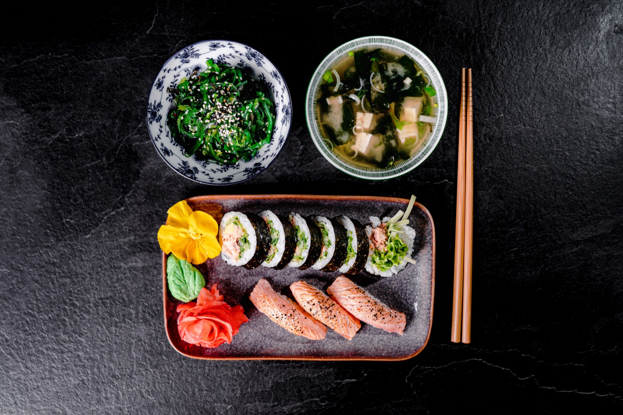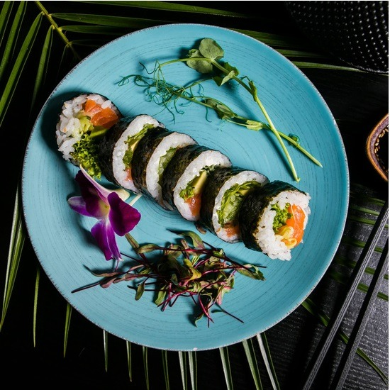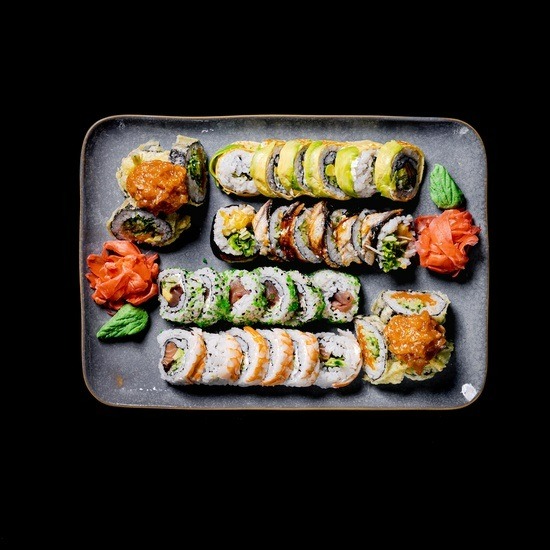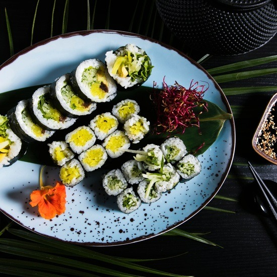2 szt nigiri z łososiem, 2 szt nigiri z rybą maślaną, 2 szt nigiri z tuńczykiem, 2 szt nigiri z krewetką gotowaną , 8 szt hoso z rybą maślaną na ostro, 8 szt hoso z rzepą marynowaną cała rolka w tempurze, 6 szt futo z pieczonym łososiem owinięte opalanym łososiem, 6 szt futo z tuńczykiem w panko i z trawą morską, 6 szt california z łososiem owinięta węgorzem i mango, 6 szt california z krewetką w tempurze rolka w tobico (Alergeny: orzechy, migdały i produkty pochodne) -